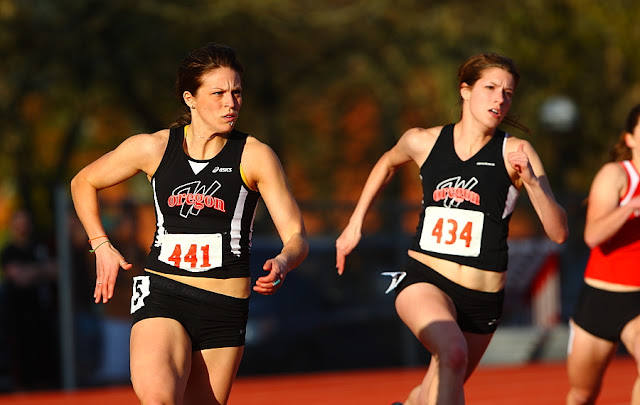 Today I shot a track meet at Western Oregon and pretty much got my butt kicked. Since I don't shoot track very often I don't have many safely shots to attempt or favorite angles to shoot from, and with events overlapping each other I had a hard time keeping track of all the action. The upside is that this was a twilight meet so the lighting was great all day.